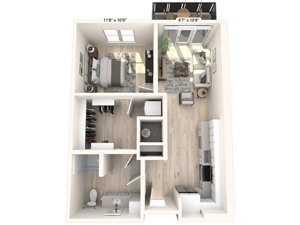 Modelo de apartamento: A1aDesde $1,1561 Dormitorio, 1 Baño, 701 sq ftDisponible March 5, 2026![]()