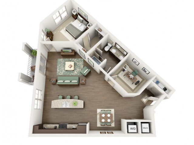 1 Dormitorio, 1 Baño, 759 pies²Galería del Modelo