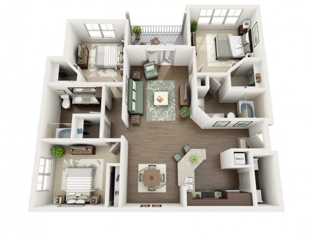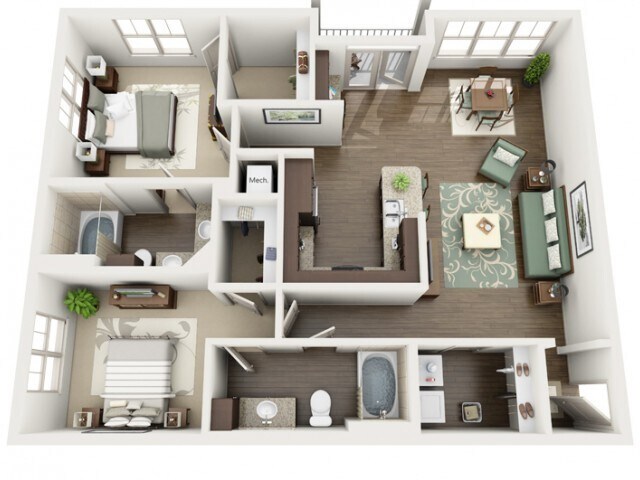 Modelo de apartamento: Mariner$2,0181 Dormitorio, 1 Baño, 1118 sq ftNo Disponible![]()