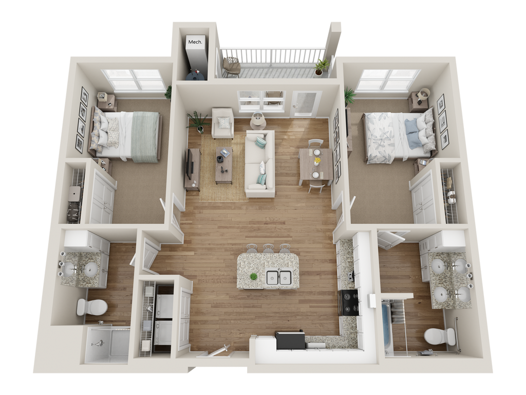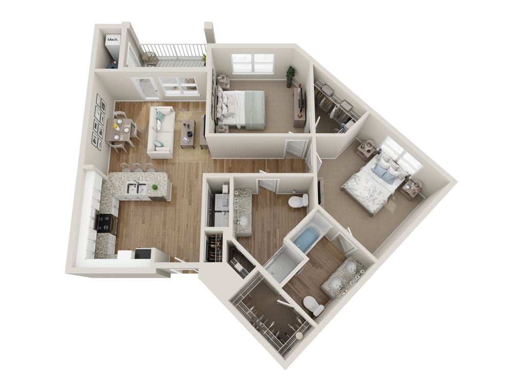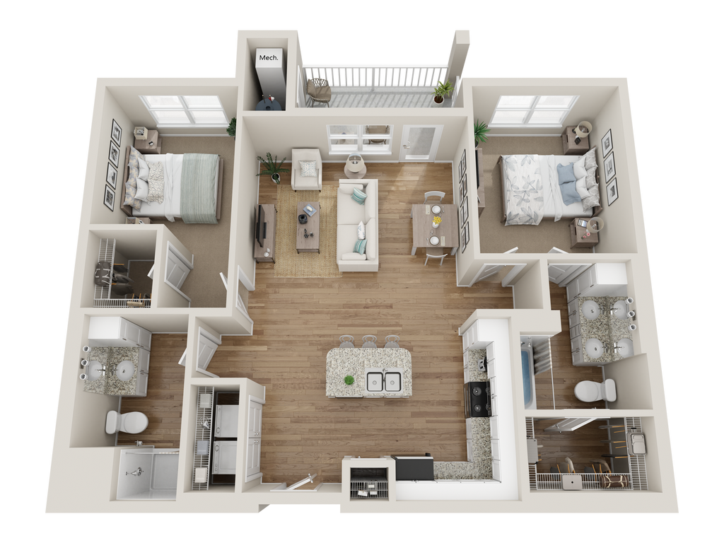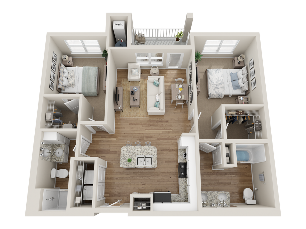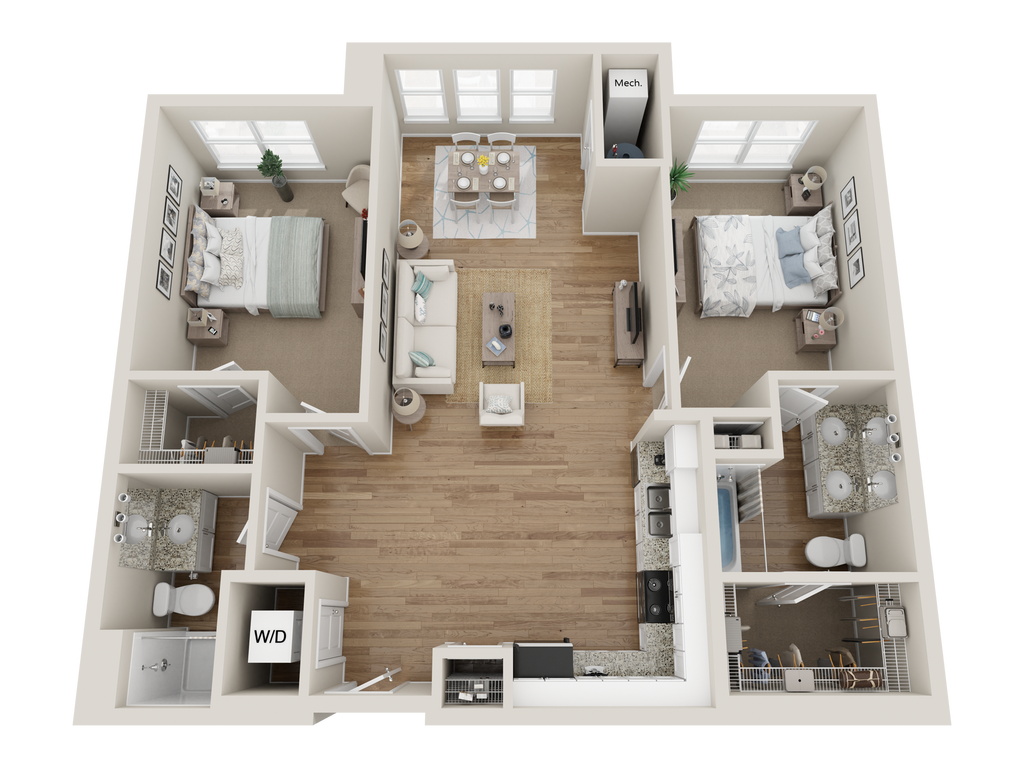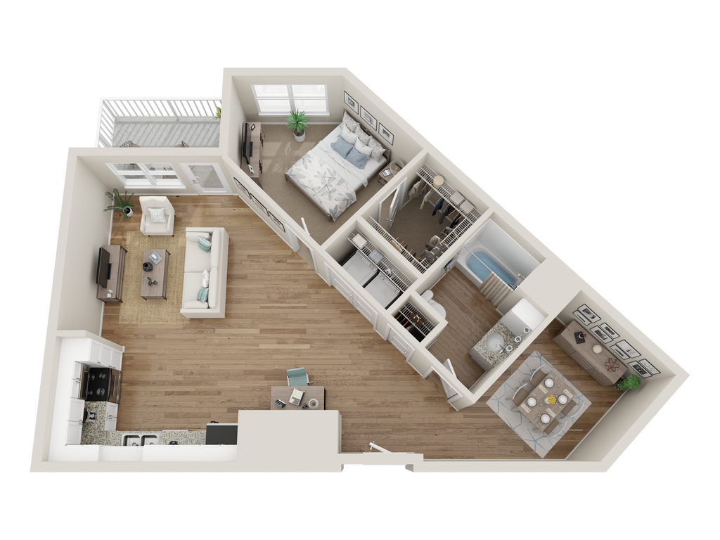 1 Dormitorio, 1 Baño, 743 pies²Disponible AhoraGalería del Modelo