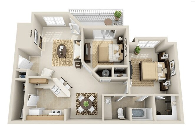 1 Dormitorio, 1 Baño, 736 pies²Disponible AhoraGalería del Modelo