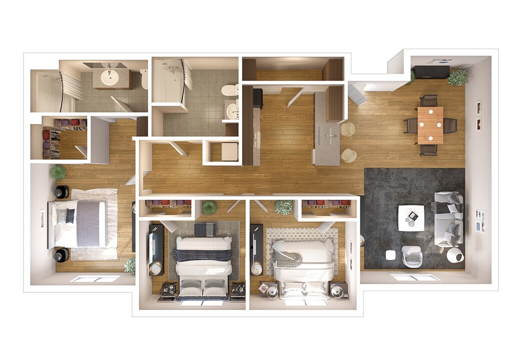 3 Dormitorios, 2 Baños, 1159 pies²Galería del Modelo