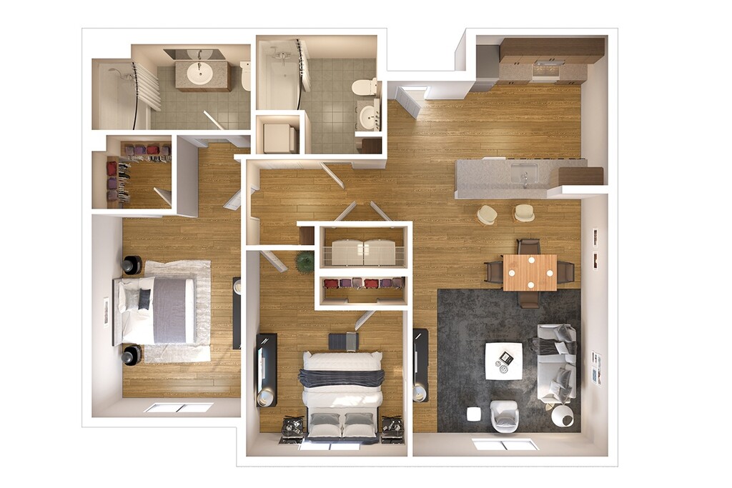 2 Dormitorios, 2 Baños, 935 pies²Galería del Modelo