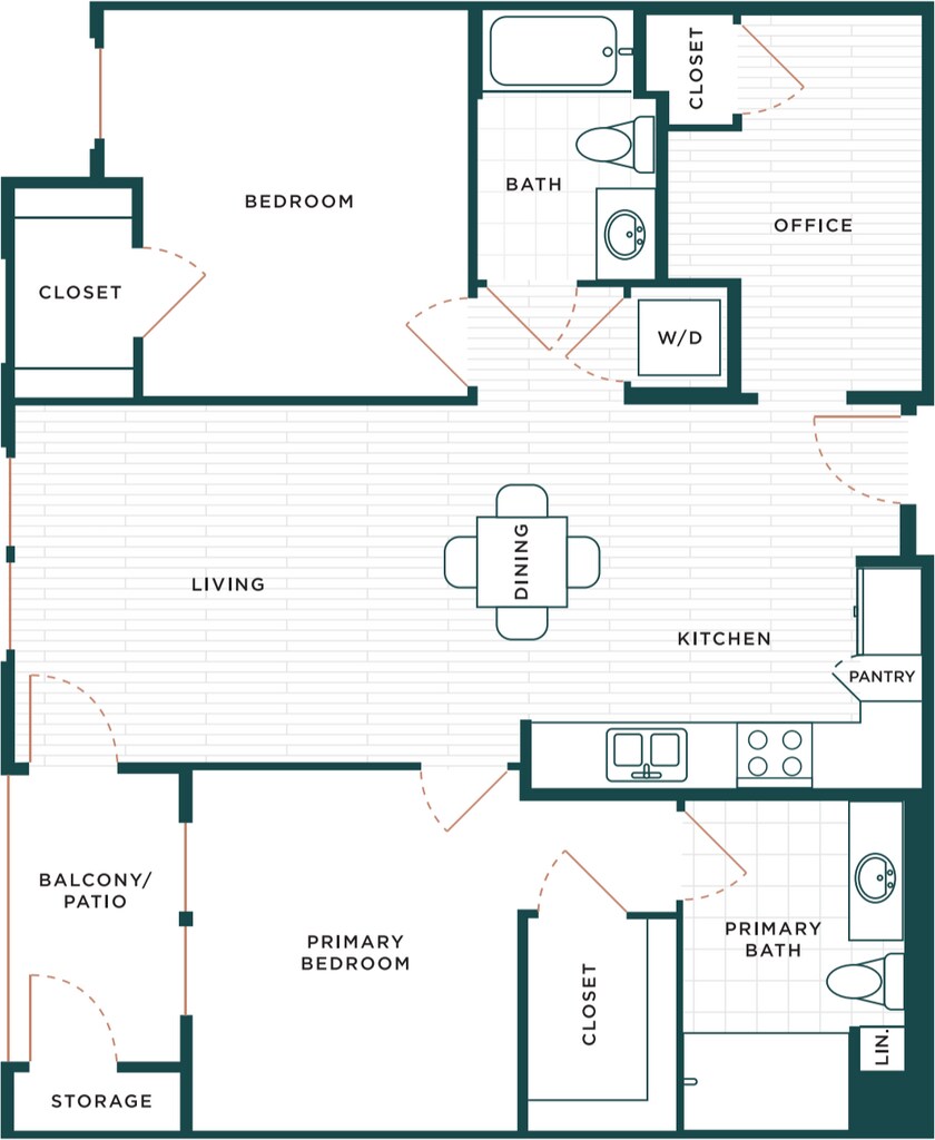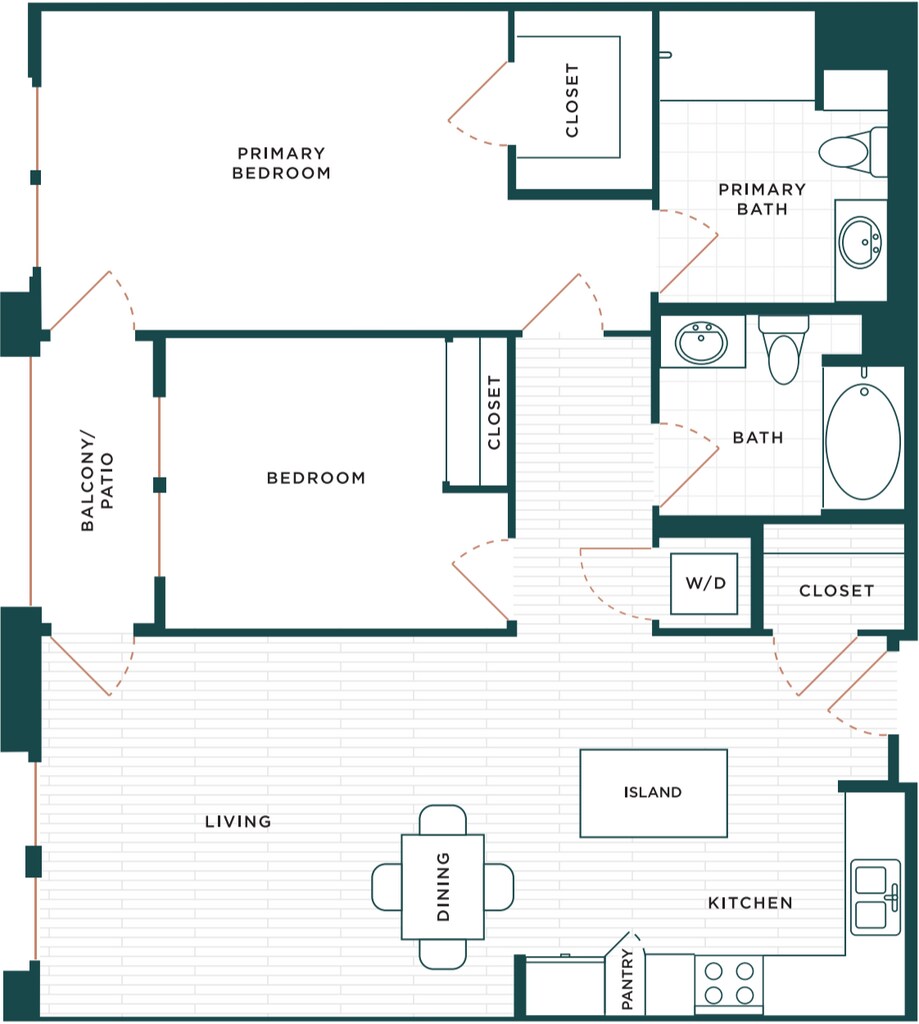 Modelo de apartamento: A2$2,8451 Dormitorio, 1 Baño, 759 sq ftDisponible Ahora![]()