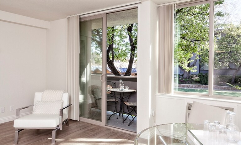 No hay nada como poder salir de tu puerta de entrada para disfrutar de todo lo que necesitas. ¿Se te antoja Starbucks? Lo tenemos. ¿Necesitas ir al banco? Lo tenemos. ¿Deseas tomar el Caltrain? Lo tenemos. Palo Alto Plaza Apartments en Mountain View, California, es un complejo de apartamentos privado ubicado en el corazón del área de Mountain View, Palo Alto y Los Altos. A poca distancia a pie del nuevo Village at San Antonio Center y a una corta distancia en auto de los centros recreativos como Shoreline Park, las principales empresas y escuelas. A nuestros residentes les encanta el acceso conveniente que ofrece nuestro complejo de apartamentos. Sumérgete en los tranquilos sonidos del paisaje acuático de una fuente escultórica única en su tipo mientras disfrutas de las terrazas de yoga o las áreas para sentarte en el exuberante jardín central. Relájate en la piscina estilo centro turístico, haz ejercicio en la marquesina de fitness al aire libre o en el patio de bicicletas de spinning al aire libre. Pasa por aquí para hacer un recorrido por nuestros apartamentos tipo estudio, de una o de dos habitaciones y todo el complejo de apartamentos. Disfrutaremos de presumir nuestros apartamentos amplios y bien iluminados de Northwest Mountain View con pisos de madera contemporáneos nuevos, gabinetes oscuros, encimeras de cuarzo, electrodomésticos de acero inoxidable, ventanas de doble panel Milgard y puertas balcón corredizas de bajo consumo y silenciosas. El estacionamiento cubierto reservado está incluido y ambos edificios cuentan con acceso controlado y tienen acogedores vestíbulos y también incluye estaciones de carga para vehículos eléctricos. Incluso tenemos The Hub, un espacio de trabajo compartido con conexión Wi-Fi gratuita para que puedas relajarte con tu computadora portátil y auriculares o disfrutar de la diversión en The Game Lounge con billar, tejo, futbolín e incluso un videojuego retro.
