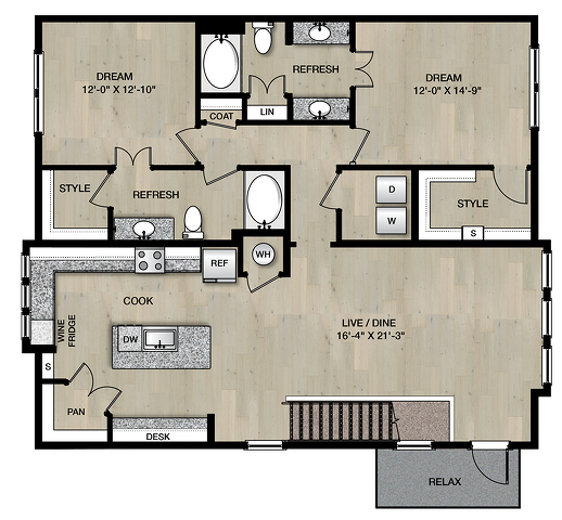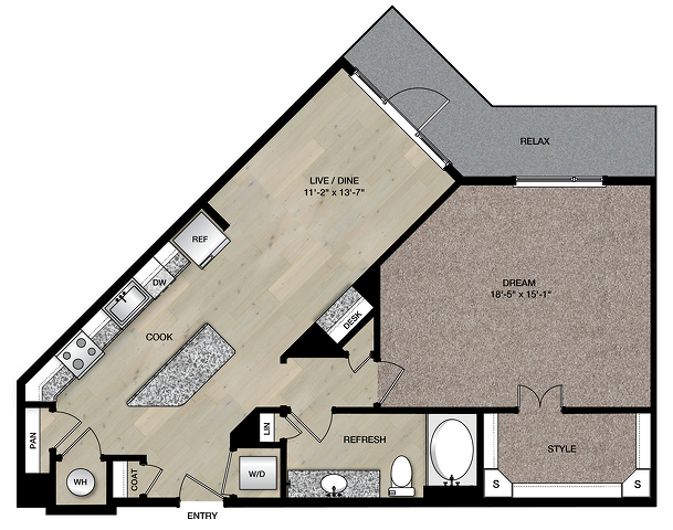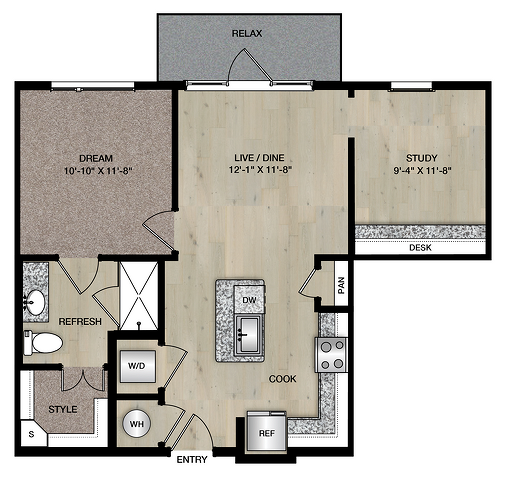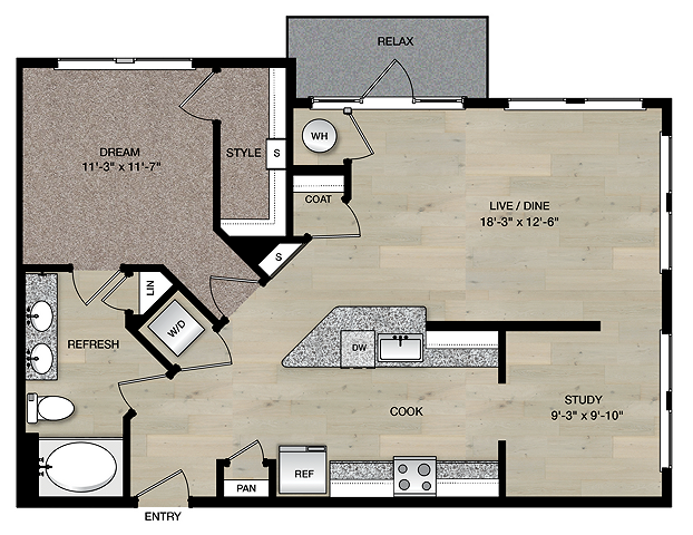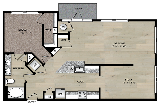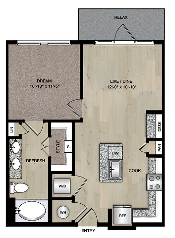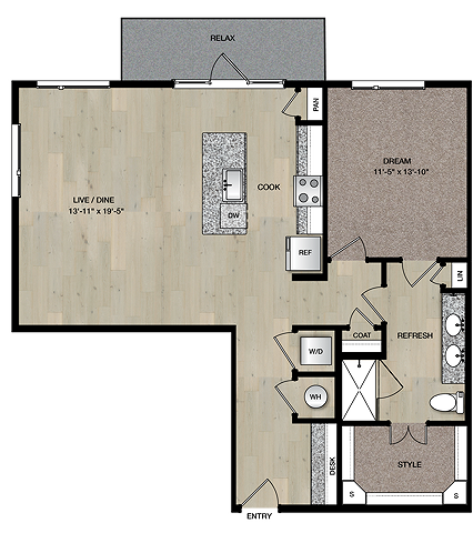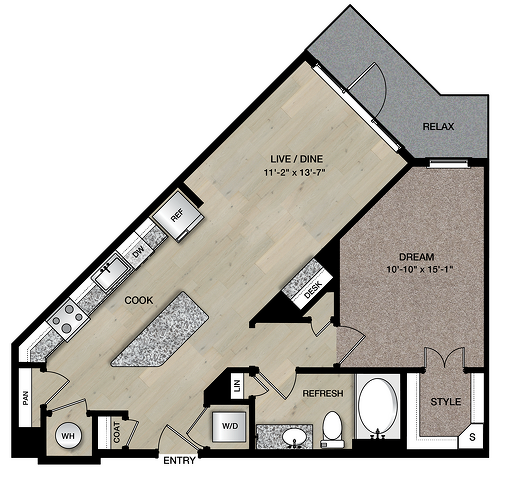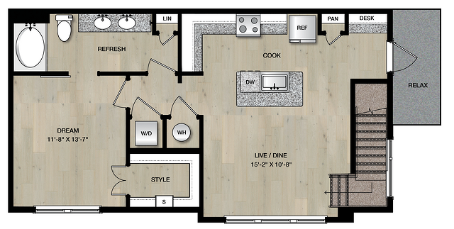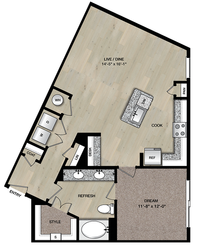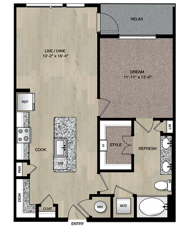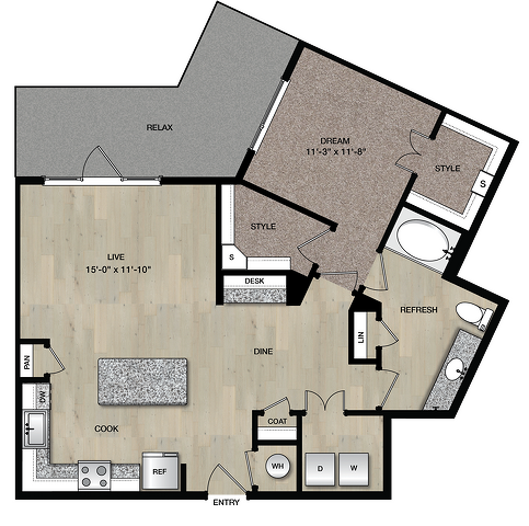 1 Dormitorio, 1 Baño, 674-732 pies²Disponible AhoraGalería del Modelo