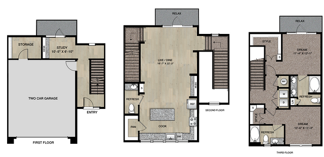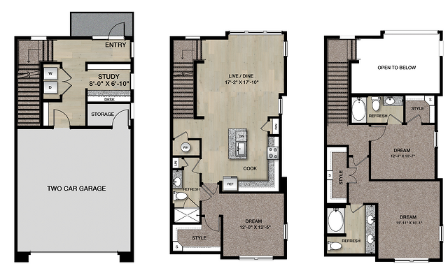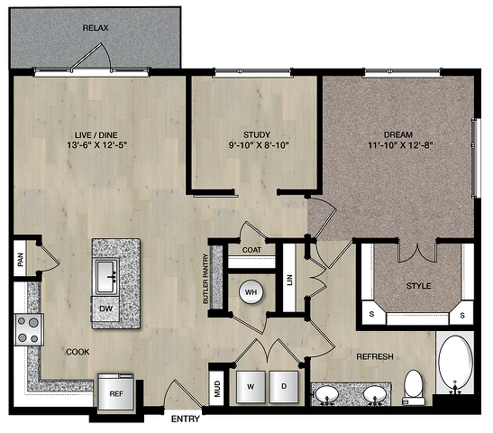 1 Dormitorio, 1 Baño, 729-775 pies²Disponible AhoraGalería del Modelo