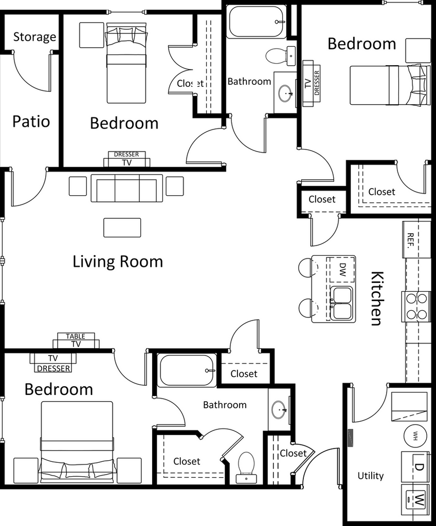 3X2 - Imagen 2 Unidad de apartamento: 2100Modelo de apartamento: 3X23 Dormitorios, 2 Baños, 1405 sq ftDisponible December 10, 2025