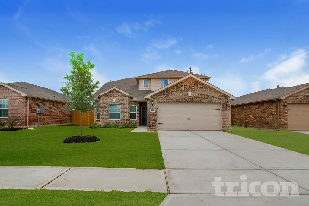 Located in La Marque, TX, Palomino Ranch features four thoughtfully designed floor plans, ranging from three to four bedrooms. Upgrades include granite kitchen countertops, cultured marble bathroom vanities, programmable thermostats, and fully fenced backyards.