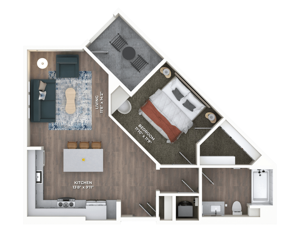 1 Dormitorio, 1 Baño, 829-898 pies²Disponible AhoraGalería del Modelo