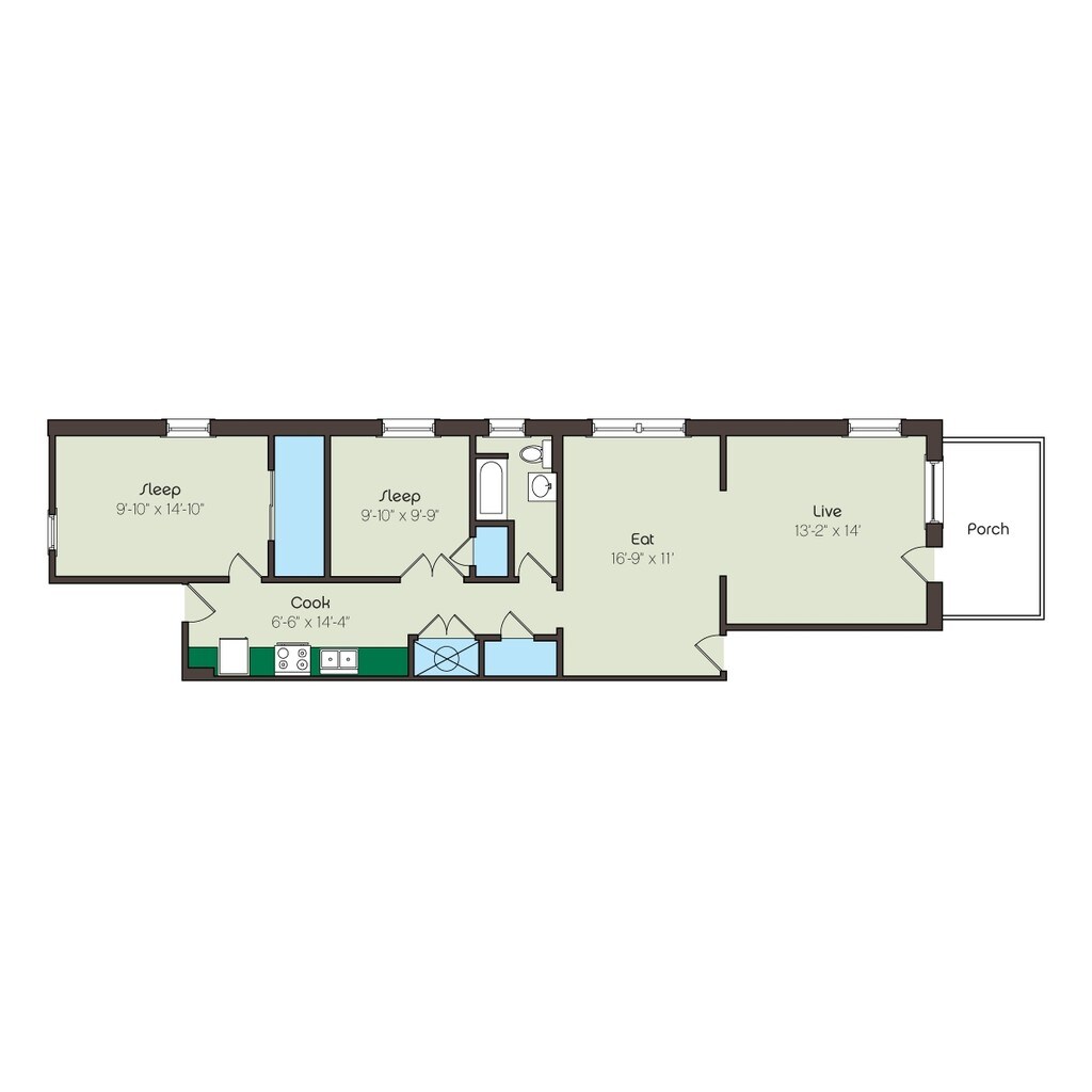 2 Dormitorios, 1 Baño, 1009 pies²Galería del Modelo