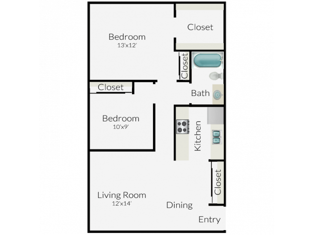 2 Dormitorios, 2 Baños, 850 pies²Precio Mensual TotalDisponible AhoraGalería del Modelo