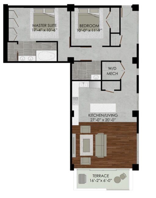 Modelo de apartamento: 2 bedroom 2 bathroom$2,4002 Dormitorios, 2 Baños, 1381-2400 sq ftDisponible Ahora![]()