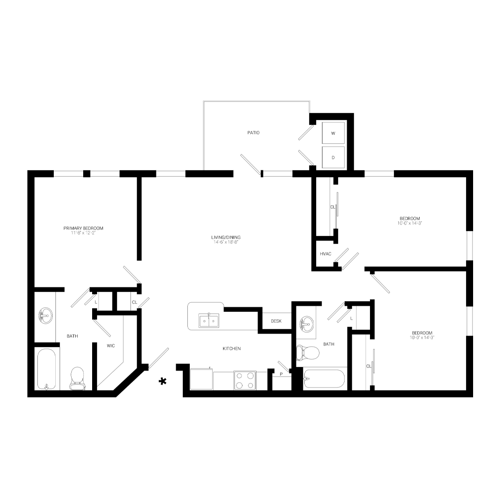 Modelo de apartamento: AdairDesde $1,0781 Dormitorio, 1 Baño, 597 sq ftDisponible AhoraLos planos son representaciones artísticas. Todas las dimensiones son aproximadas. El producto y las especificaciones reales pueden variar en tamaño o detalle. No todas las características están disponibles en cada vivienda en alquiler. Por favor, consulta con un representante para obtener más detalles.