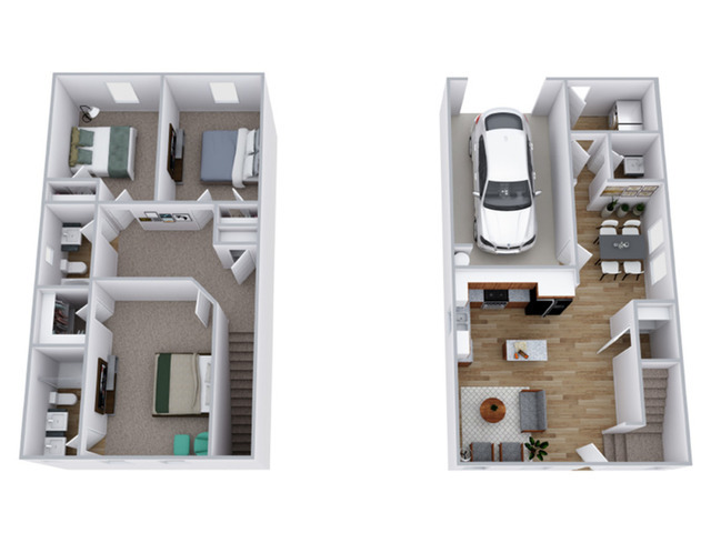 3 Dormitorios, 2.5 Baños, 1369 pies²Disponible AhoraGalería del Modelo