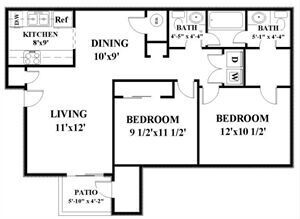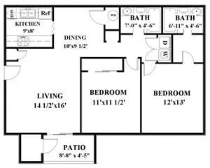 Modelo de apartamento: B2Desde $6822 Dormitorios, 2 Baños, 928 sq ftDisponible Ahora![]()