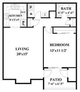Modelo de apartamento: A1Desde $1,1371 Dormitorio, 1 Baño, 620 sq ftDisponible Ahora![]()