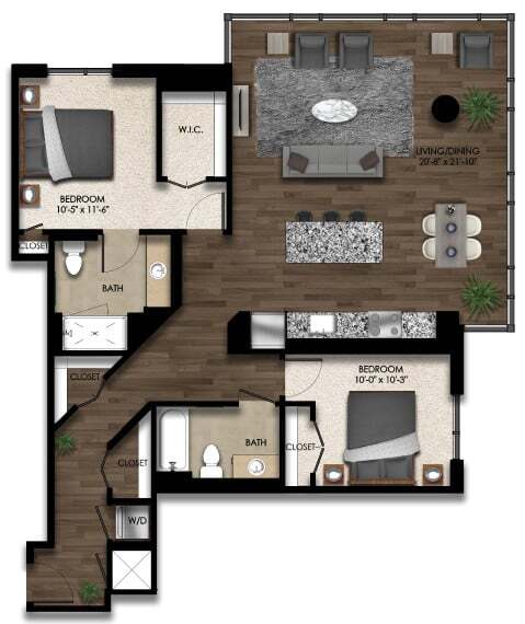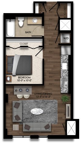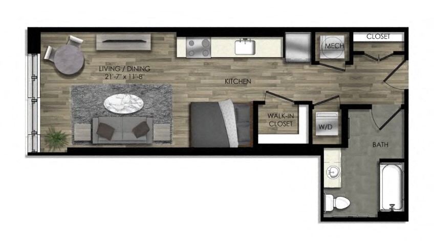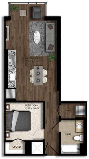 Estudio, 1 Baño, 521 pies²Disponible AhoraGalería del Modelo