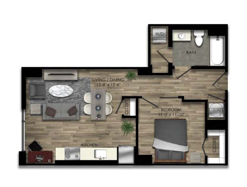 Estudio, 1 Baño, 595 pies²Disponible AhoraGalería del Modelo