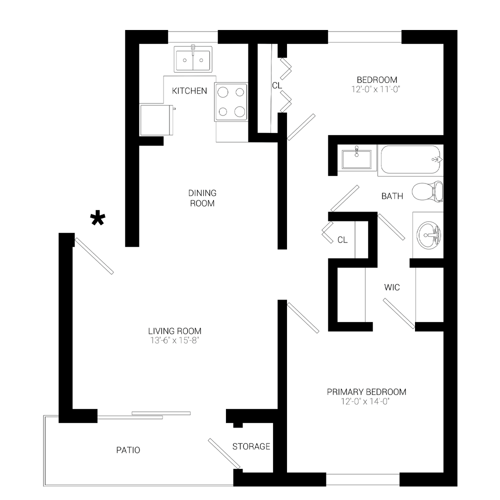 Modelo de apartamento: The AmeliaLlame para Precios1 Dormitorio, 1 Baño, 600 sq ftNo DisponibleThe Amelia - Plano 1 2 Dormitorios