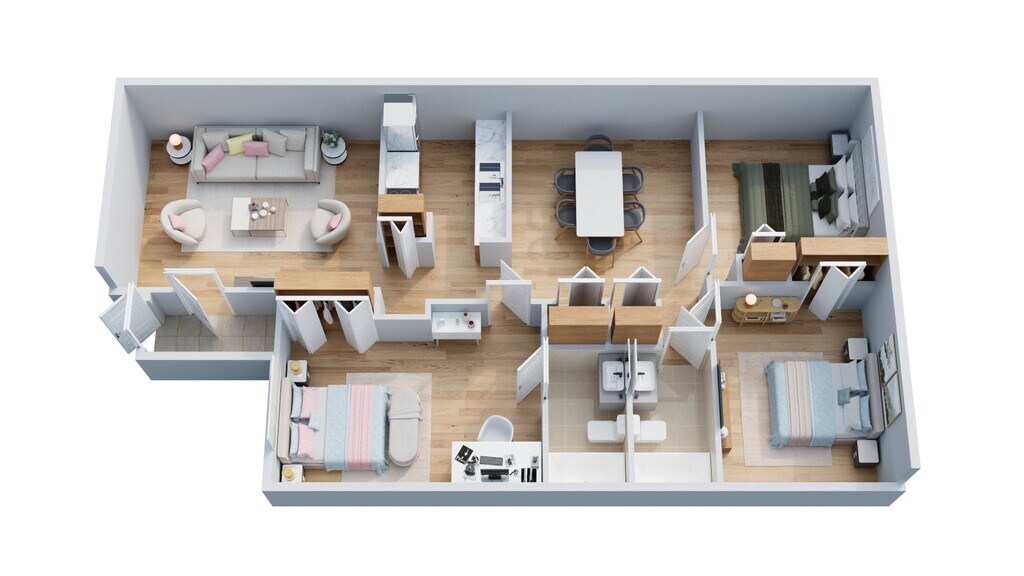 2 Dormitorios, 2 Baños, 1038 pies²El más grandeEsta opción tiene las unidades más grandes para este modeloGalería del Modelo