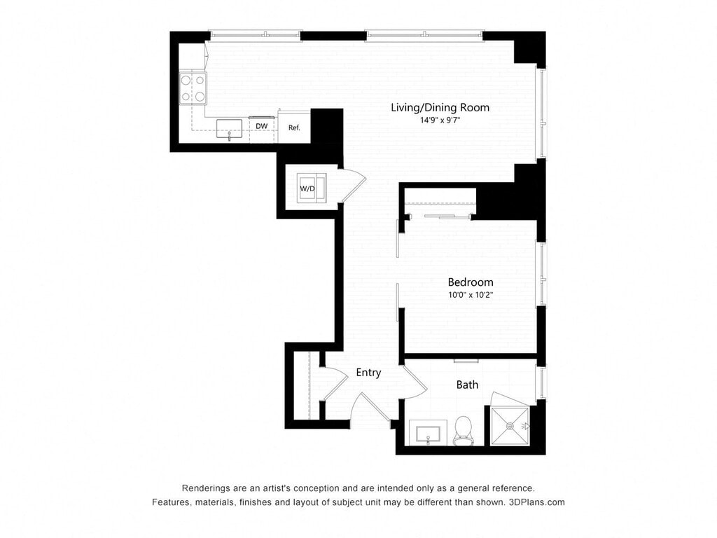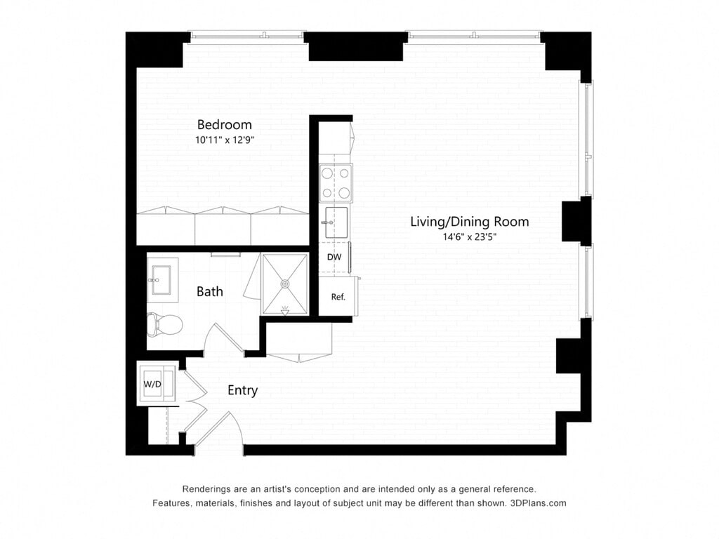 Estudio, 1 Baño, 425 pies²Precio Mensual TotalDisponible AhoraGalería del Modelo