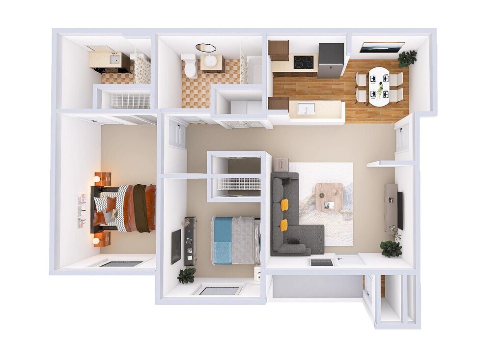 Modelo de apartamento: HummingbirdDesde $1,3331 Dormitorio, 1 Baño, 653 sq ftDisponible Ahora![]()
