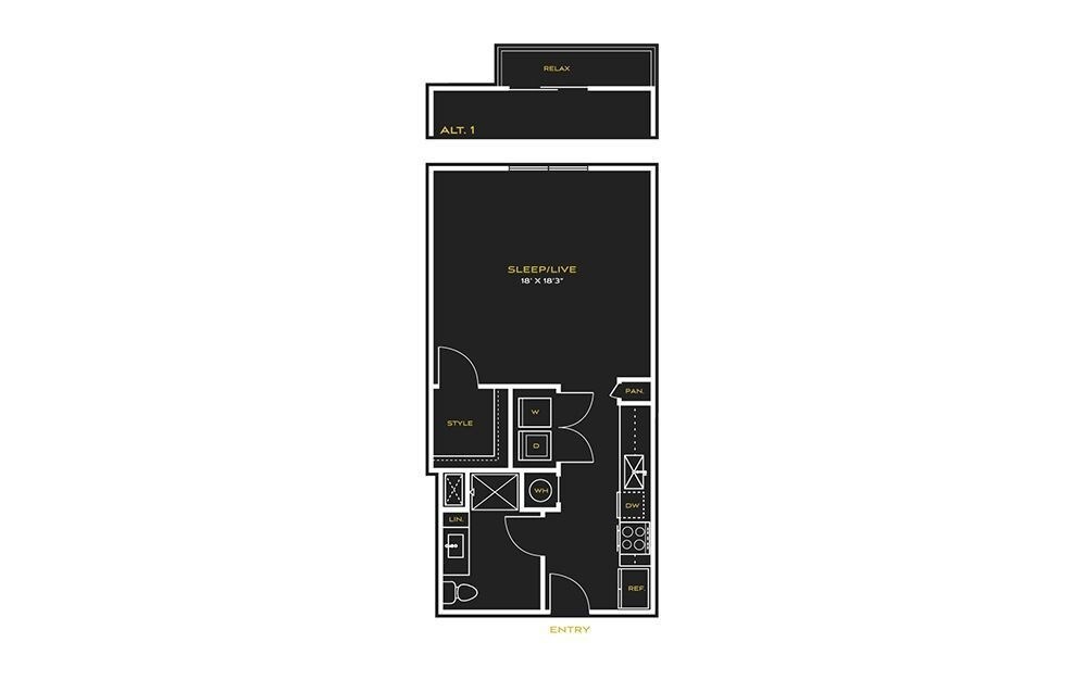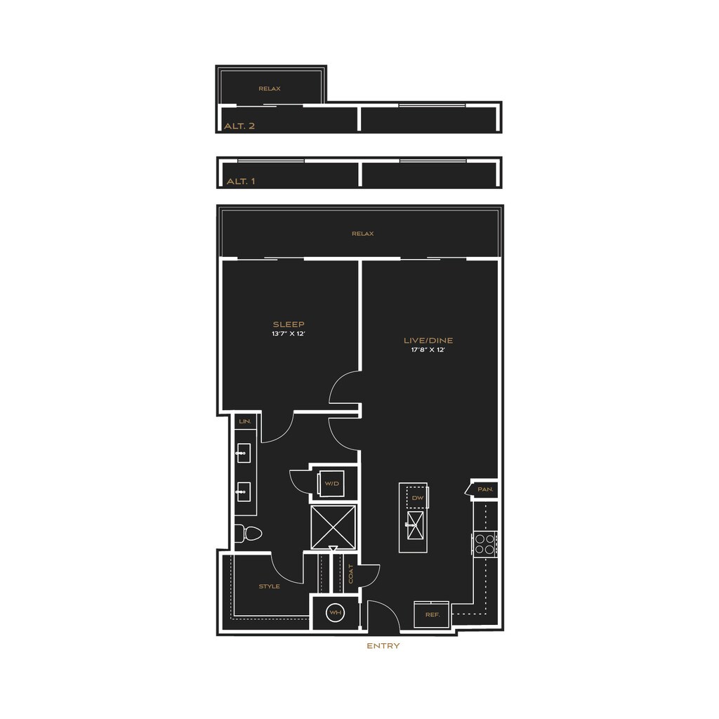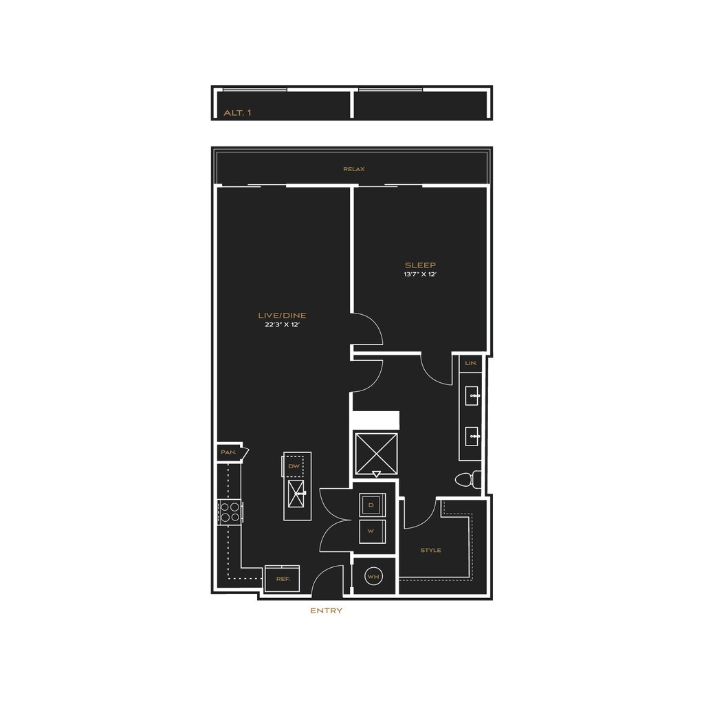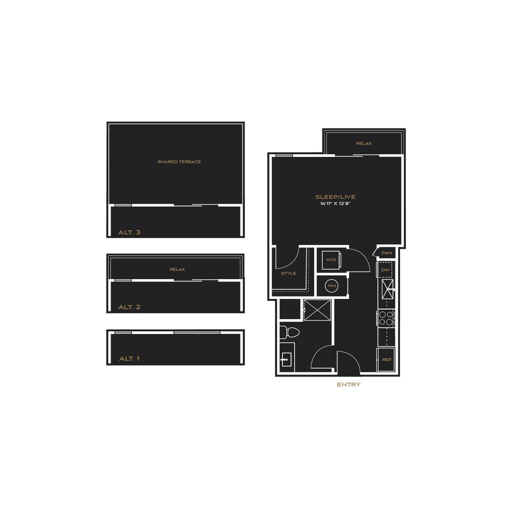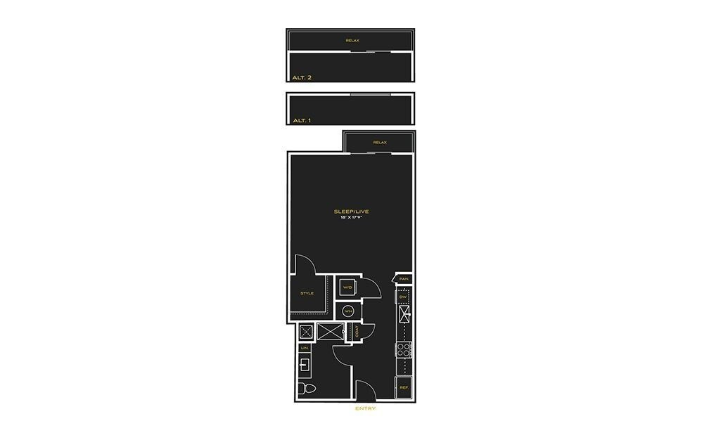 Estudio, 1 Baño, 666 pies²Disponible AhoraGalería del Modelo
