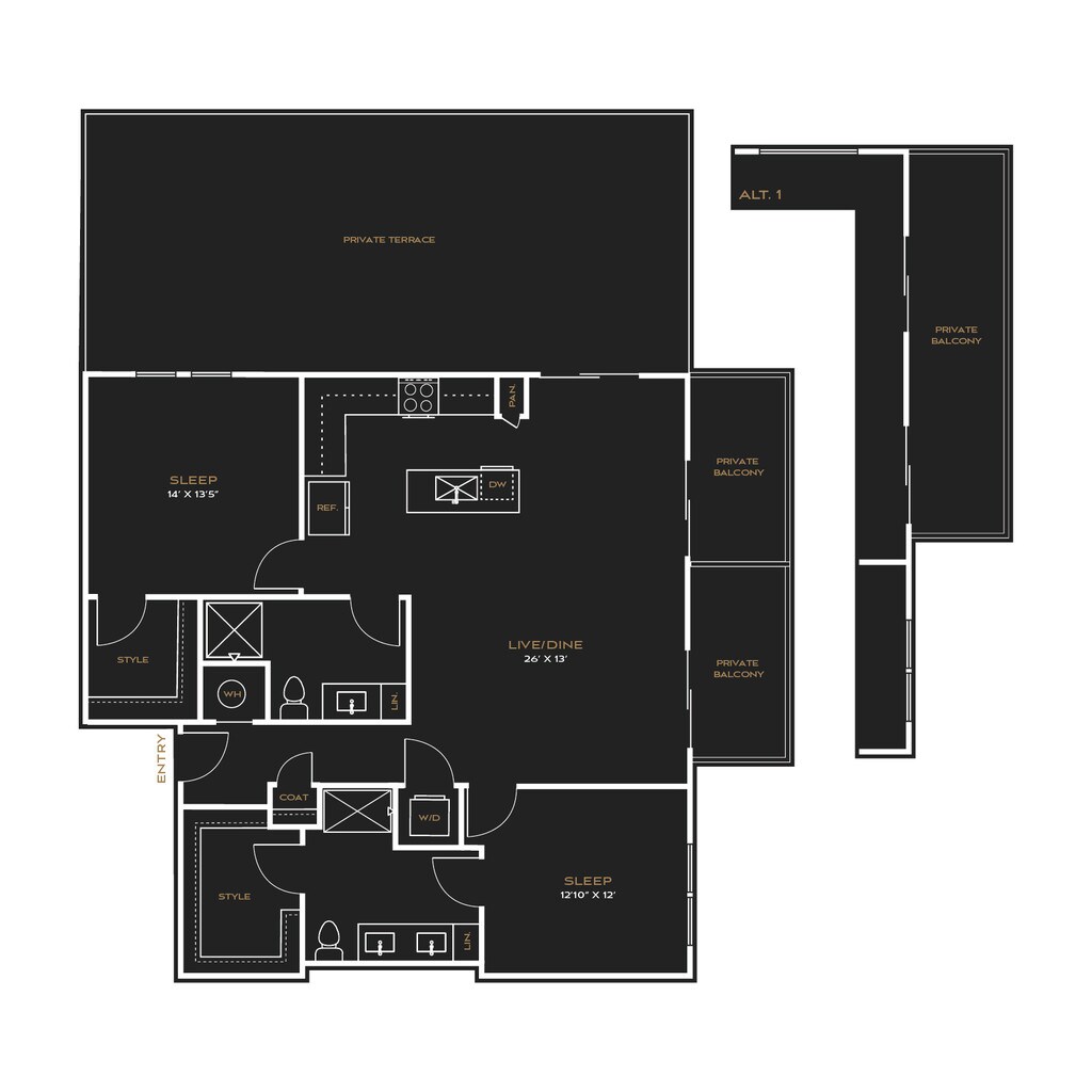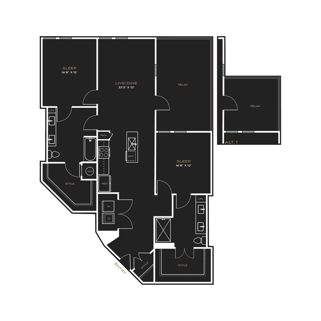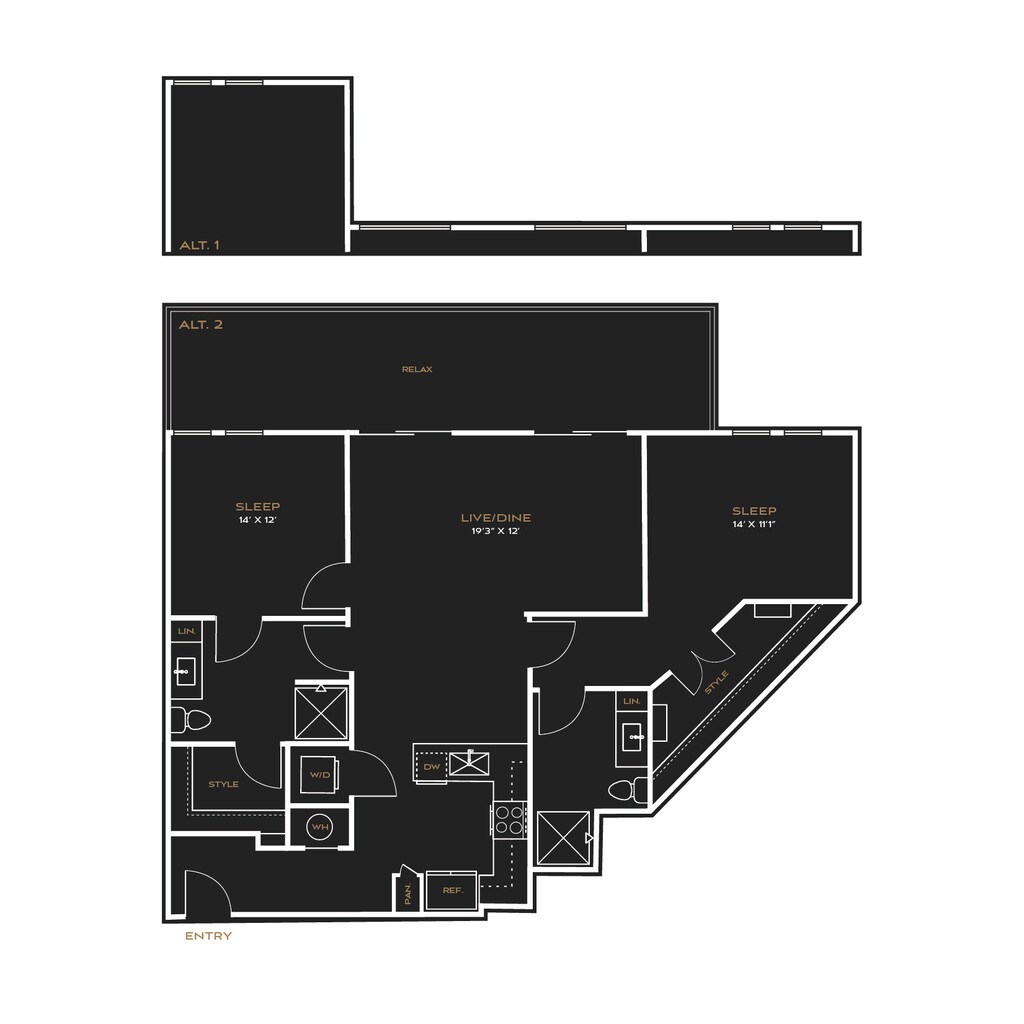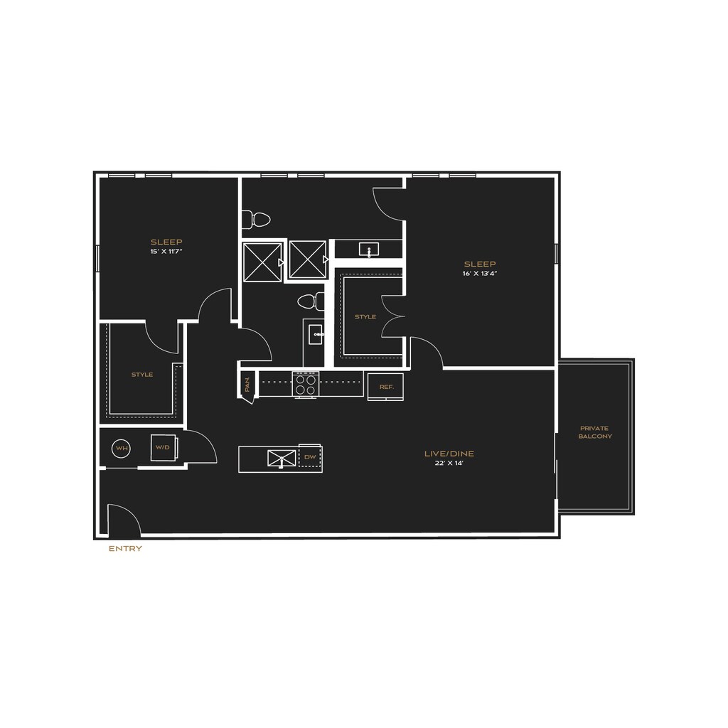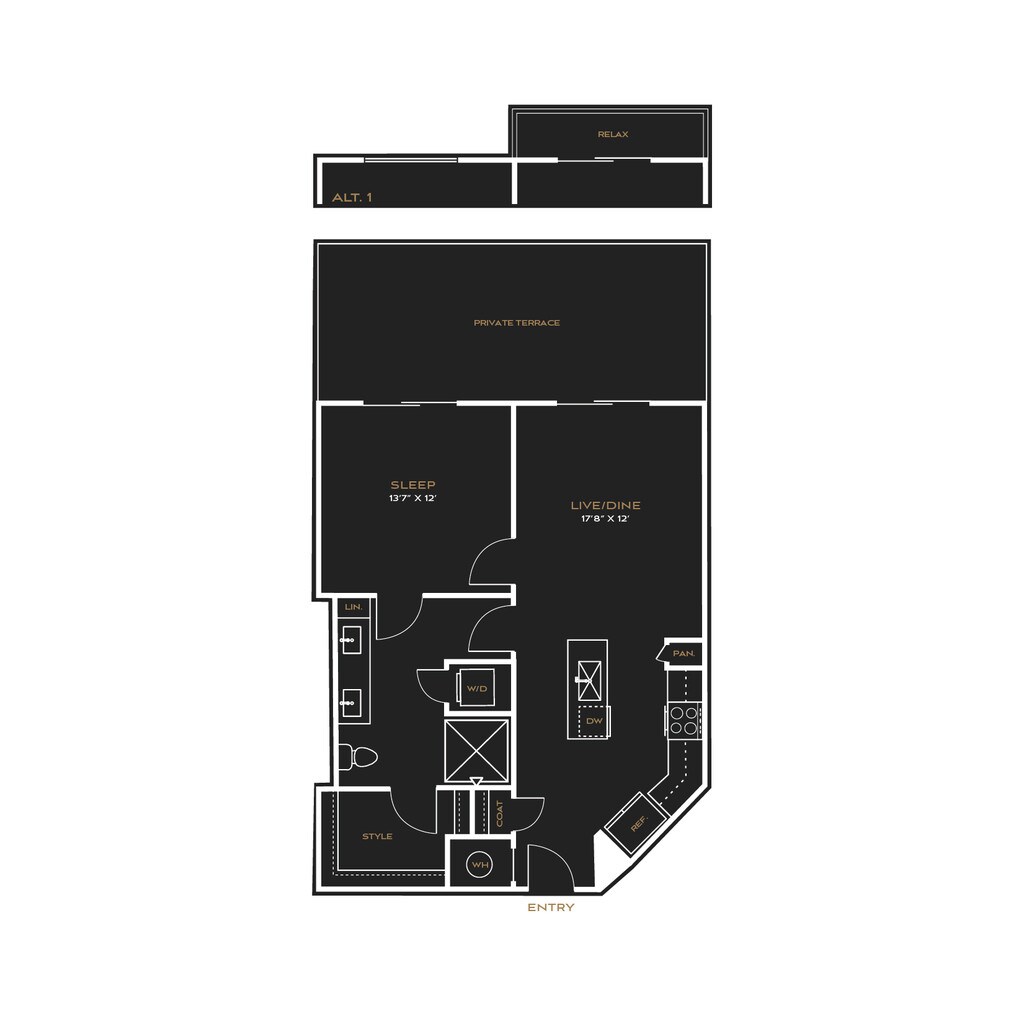 Estudio, 1 Baño, 666 pies²Disponible AhoraGalería del Modelo