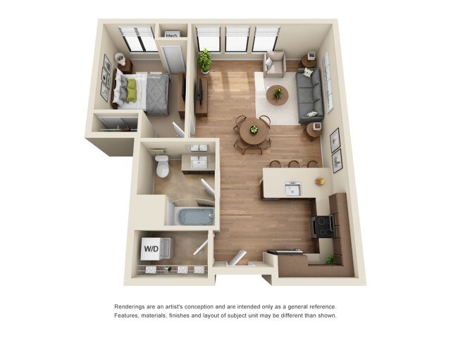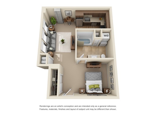 Estudio, 1 Baño, 644 pies²Disponible AhoraGalería del Modelo