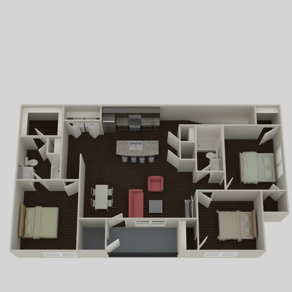 Modelo de apartamento: ADesde $1,3261 Dormitorio, 1 Baño, 894 sq ftDisponible Ahora![]()