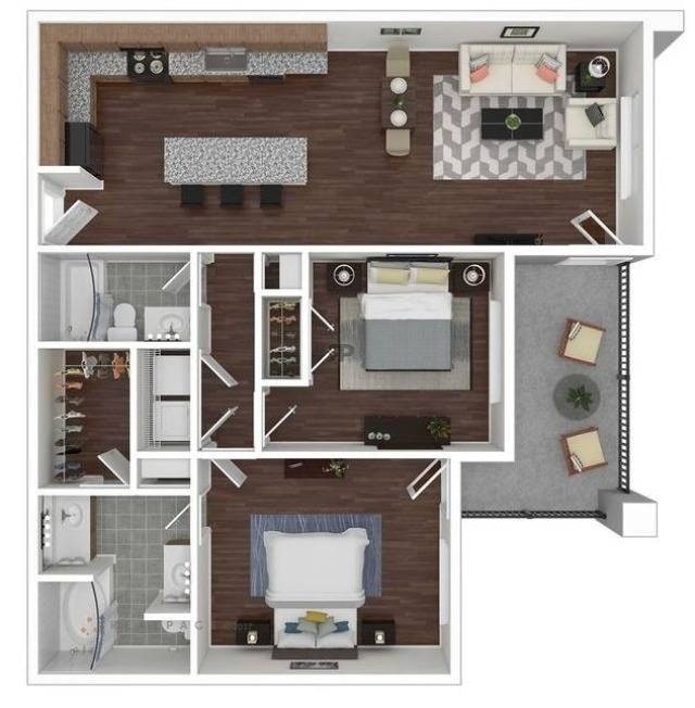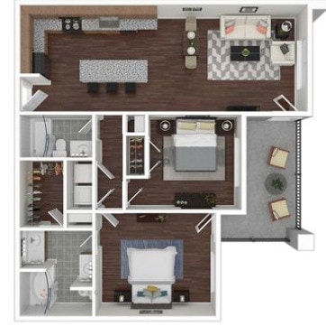 Unidad de apartamento: 4310Modelo de apartamento: B1R22 Dormitorios, 2 Baños, 1030 sq ftDisponible AhoraPlano: B1R