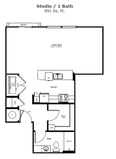 Biltmore - Plano Unidad de apartamento: 311Modelo de apartamento: Biltmore$1,294Estudio, 1 Baño, 651 sq ftDisponible June 20, 20261 Dormitorio