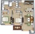 Modelo de apartamento: 2 Bedroom/2 Bath Apartment (Building B)$1,5502 Dormitorios, 2 Baños, 970 sq ftDisponible Ahora![]()