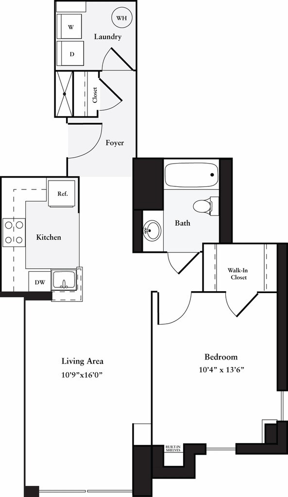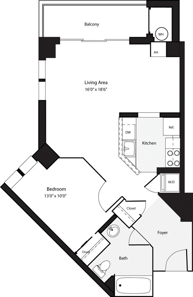 Modelo de apartamento: 1 Bedroom DLlame para Precios1 Dormitorio, 1 Baño, 680 sq ftNo Disponible1 Bedroom D - Plano 1 1 Bedroom E