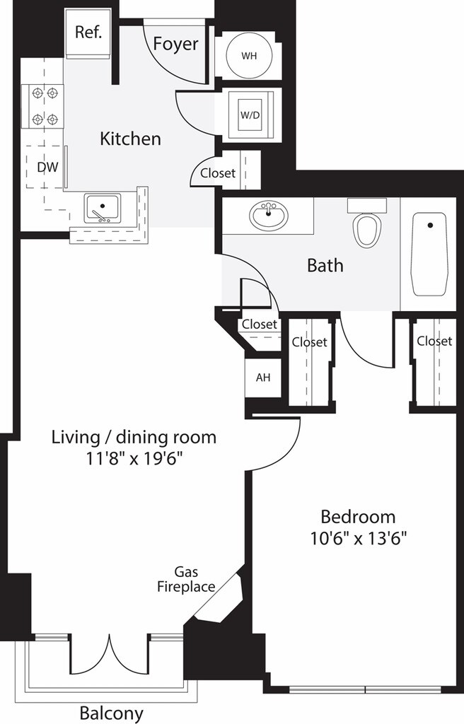 Modelo de apartamento: 1 Bedroom F no TerraceLlame para Precios1 Dormitorio, 1 Baño, 693 sq ftNo Disponible1 Bedroom F no Terrace - Plano 1 1 Bedroom I