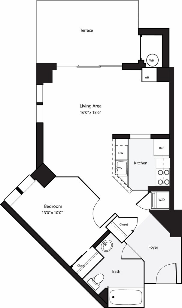 Modelo de apartamento: 1 Bedroom FLlame para Precios1 Dormitorio, 1 Baño, 693 sq ftNo Disponible1 Bedroom F - Plano 1 1 Bedroom F no Terrace