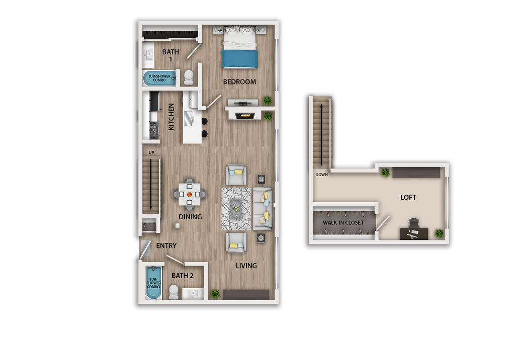 Modelo de apartamento: 1 Bed Plus Loft$2,5951 Dormitorio, 2 Baños, 850 sq ftDisponible December 31, 2025![]()