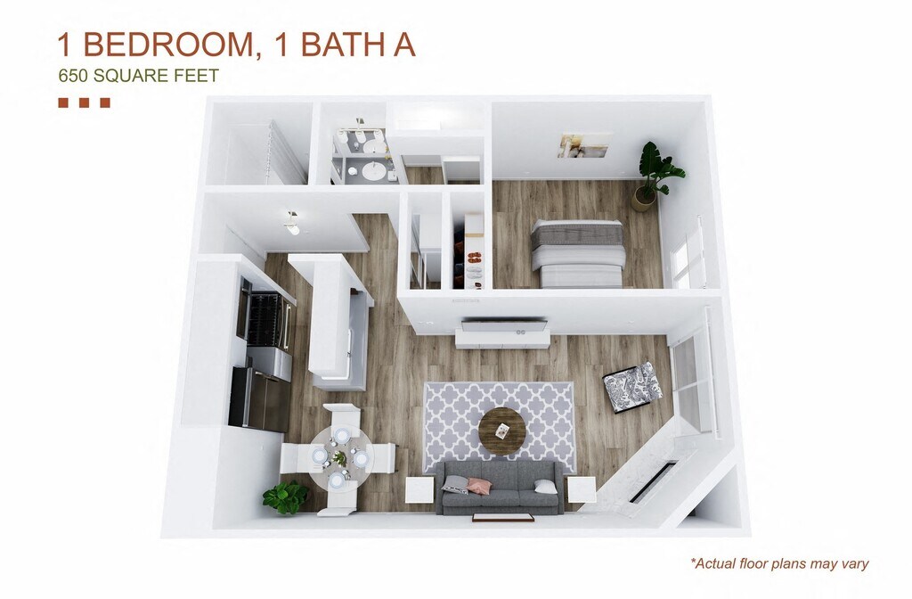 1 Dormitorio, 1 Baño, 650 pies²Disponible AhoraGalería del Modelo