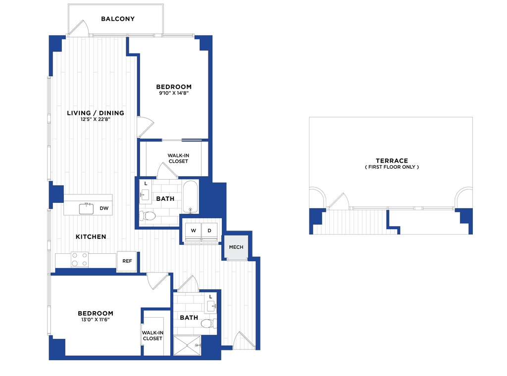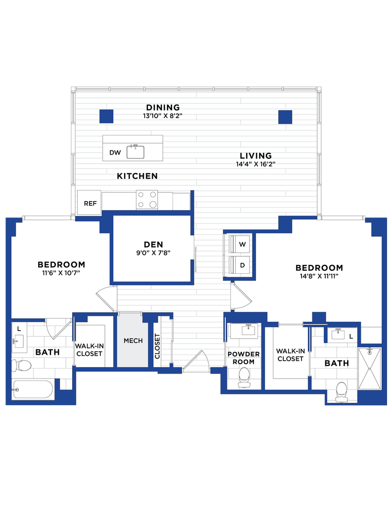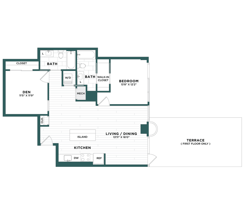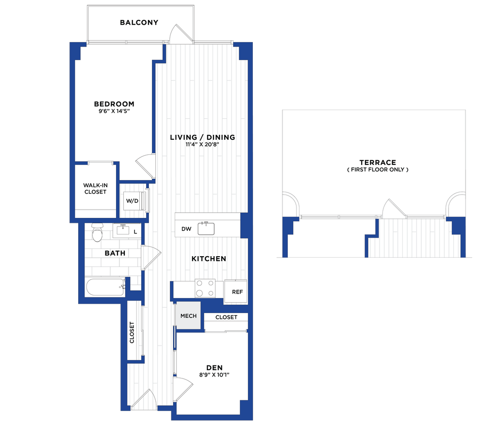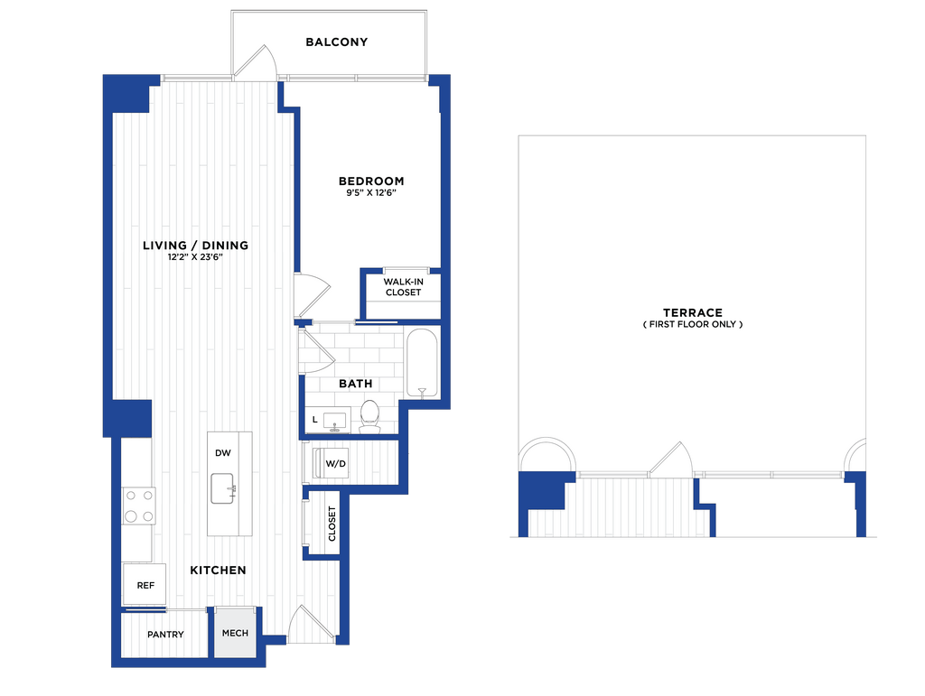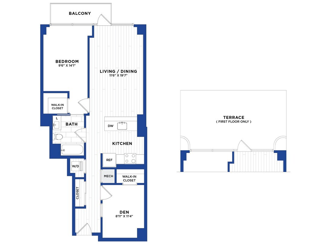 1 Dormitorio, 1 Baño, 720 pies²Disponible AhoraGalería del Modelo