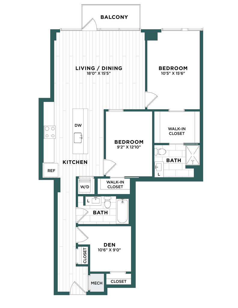 Modelo de apartamento: JR 1 Bed/1 Bath-F1Desde $2,2781 Dormitorio, 1 Baño, 580 sq ftDisponible Ahora![]()
