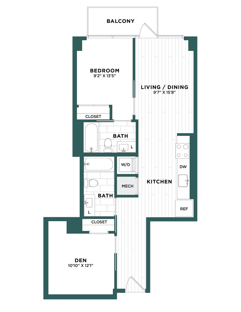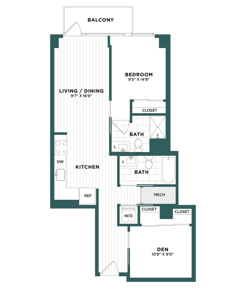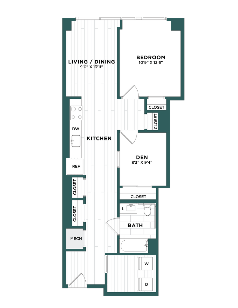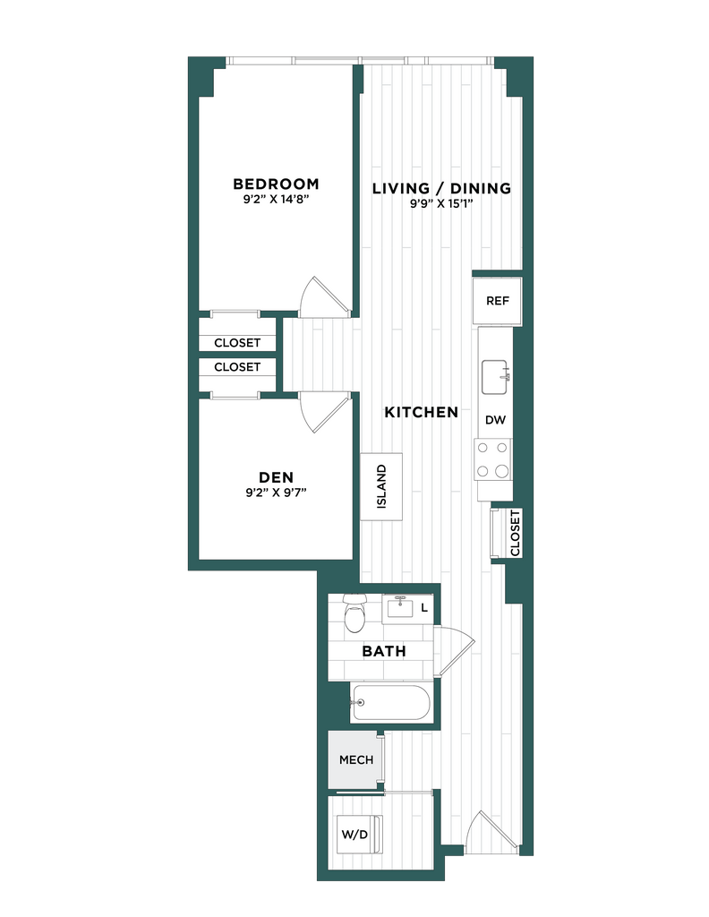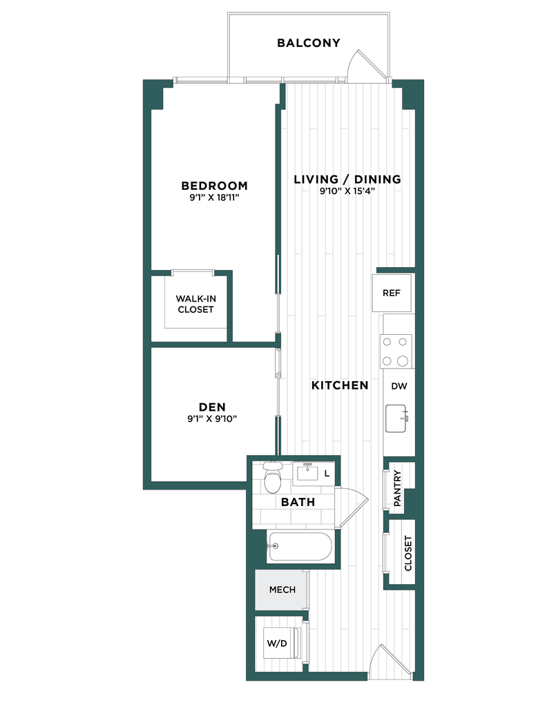 1 Dormitorio, 1 Baño, 580 pies²Disponible AhoraGalería del Modelo