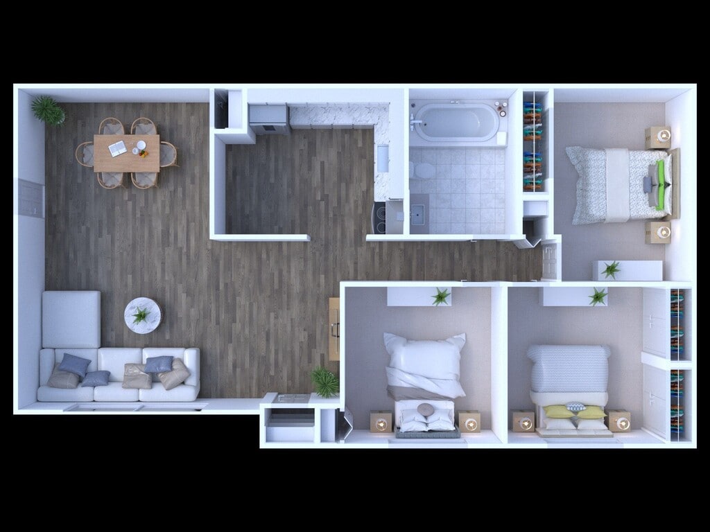 Modelo de apartamento: 2 Bed 1 Bath | ClassicDesde $1,4552 Dormitorios, 1 Baño, 720 sq ftDisponible December 1, 2025![]()