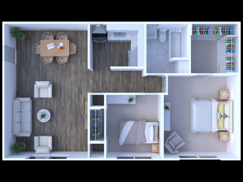 2 Dormitorios, 1 Baño, 720 pies²Disponible AhoraGalería del Modelo