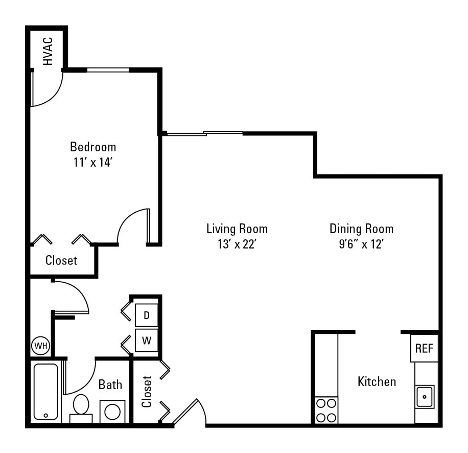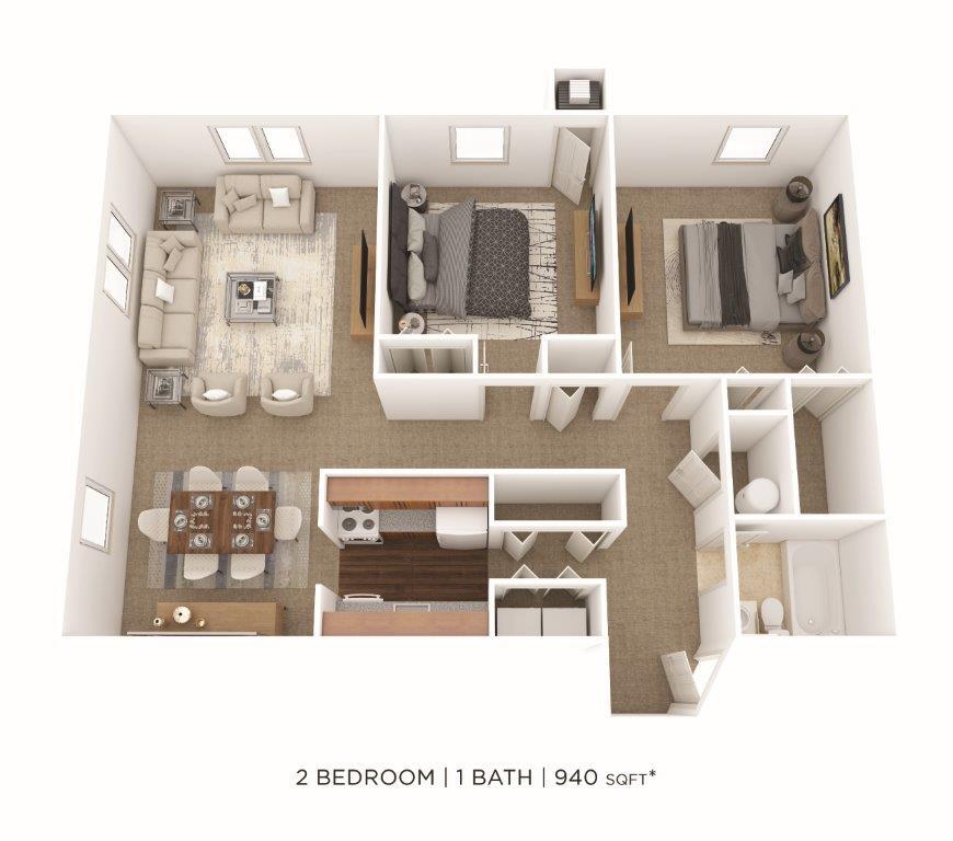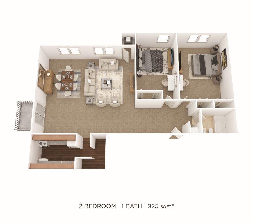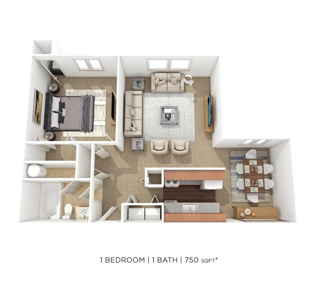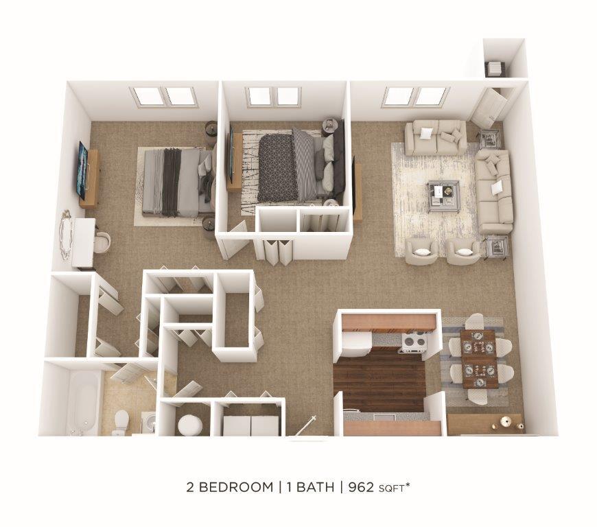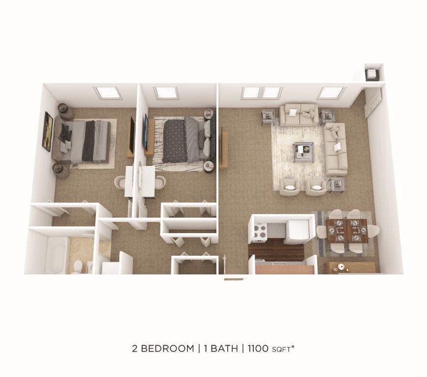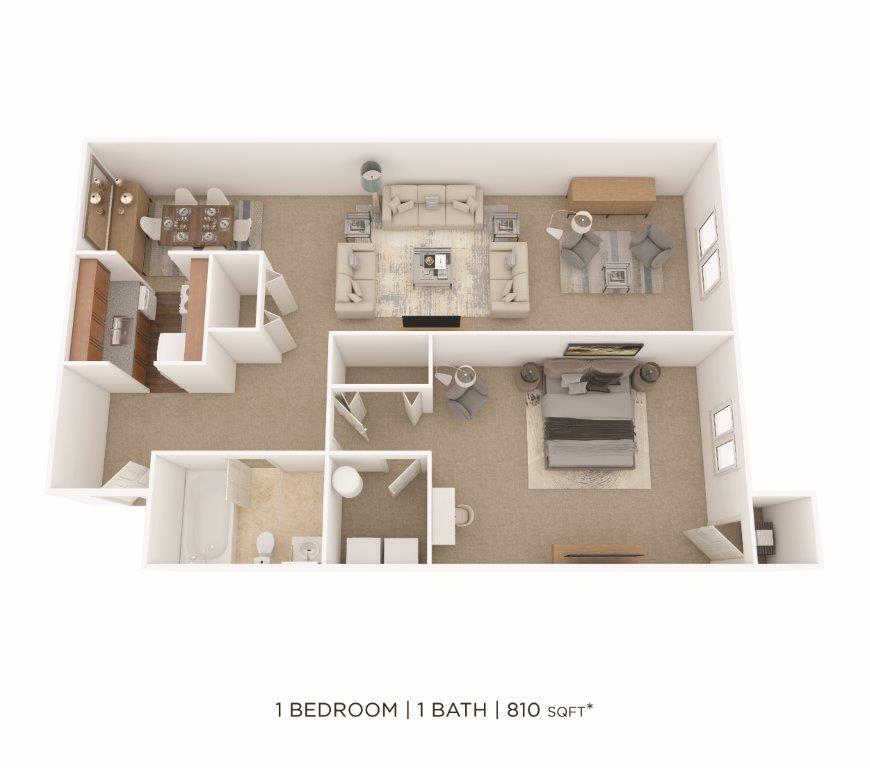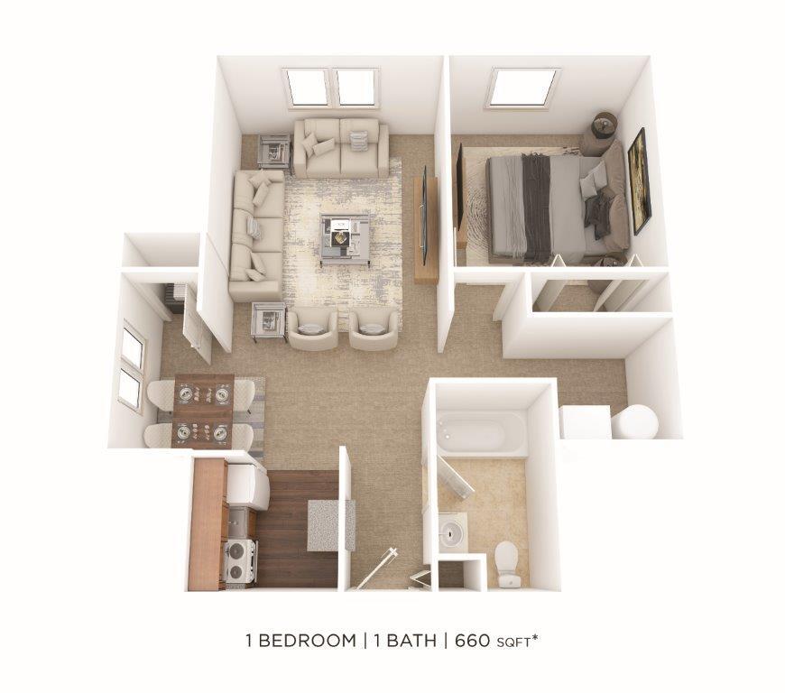 1 Dormitorio, 1 Baño, 650 pies²Disponible AhoraGalería del Modelo