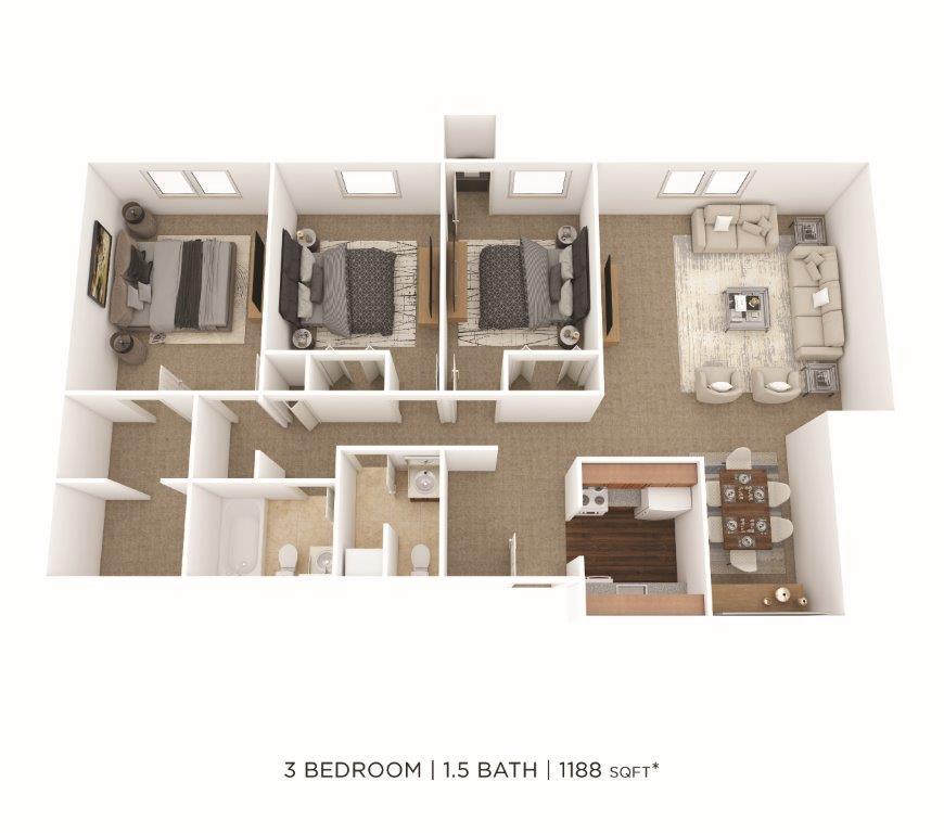 Modelo de apartamento: One Bedroom- 650 sqftDesde $1,2001 Dormitorio, 1 Baño, 650 sq ftDisponible Ahora![]()