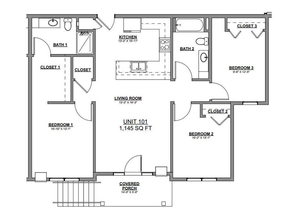 3 Dormitorios, 2 Baños, 902-1170 pies²Galería del Modelo