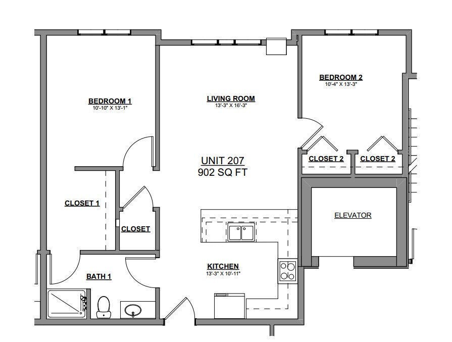 2 Dormitorios, 1 Baño, 902 pies²Galería del Modelo
