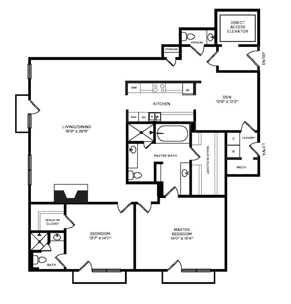 Modelo de apartamento: Floor Plan 12Llame para Precios1 Dormitorio, 3 Baños, 2137 sq ftNo Disponible![]()