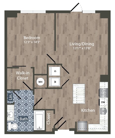 A12H - Plano 5 Unidad de apartamento: 307Modelo de apartamento: A12H1 Dormitorio, 1 Baño, 737 sq ftDisponible AhoraPlano: A7A